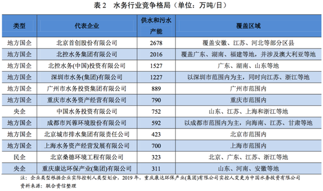 水務(wù)企業(yè)類(lèi)型和競(jìng)爭(zhēng)格局方面,目前,我國(guó)行業(yè)內(nèi)分布的水務(wù)企業(yè)大致可分為三種,國(guó)有水務(wù)企業(yè)(央企和地方國(guó)企)、外商投資水務(wù)企業(yè)和民營(yíng)水務(wù)企業(yè)。其中,國(guó)有地方水務(wù)企業(yè)普遍,多為所在地方原事業(yè)單位改制形成,其業(yè)務(wù)結(jié)構(gòu)相對(duì)單一,以服務(wù)所在區(qū)域供水和污水處理為主業(yè),區(qū)域壟斷性突出,是水務(wù)行業(yè)的主力軍。部分實(shí)力較強(qiáng)的區(qū)域(北京、深圳、成都、重慶等地)地方國(guó)有水務(wù)企業(yè)和央屬水務(wù)企業(yè)基于雄厚的股東背景、資金實(shí)力和技術(shù)水平,通過(guò)并購(gòu)、合資、參控股、BOT和PPP等方式在全國(guó)范圍內(nèi)或國(guó)外異地?cái)U(kuò)張,獲取供水和污水處理業(yè)務(wù)特許經(jīng)營(yíng)權(quán),并通過(guò)水務(wù)衍生行業(yè)拓展成為投資型綜合水務(wù)企業(yè),對(duì)原區(qū)域內(nèi)地方水務(wù)企業(yè)產(chǎn)生一定競(jìng)爭(zhēng)。外資水務(wù)企業(yè)往往擁有先進(jìn)的水務(wù)技術(shù)和較高的管理水平,尤其在污水處理行業(yè)處于技術(shù)領(lǐng)先地位,但進(jìn)入中國(guó)水務(wù)市場(chǎng)數(shù)量較少。民營(yíng)水務(wù)企業(yè)所占市場(chǎng)份額較小,主要通過(guò)PPP模式在污水處理和水環(huán)境治理領(lǐng)域參與競(jìng)爭(zhēng),面臨較大投資和回款壓力。
