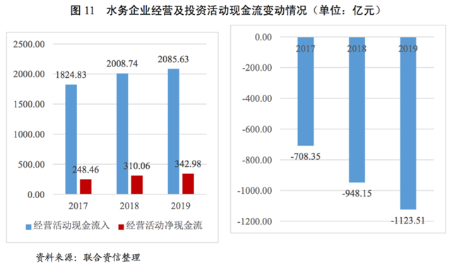 水務(wù)企業(yè)現(xiàn)金流狀況較好,收現(xiàn)能力較強(qiáng),投資活動(dòng)現(xiàn)金流出規(guī)模較大,未來(lái)隨著污水處理及水環(huán)境治理領(lǐng)域的需求增長(zhǎng),預(yù)計(jì)投資需求仍將持續(xù)較大規(guī)模。