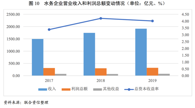 受益于水務(wù)工程施工、水環(huán)境整治、污水處理業(yè)務(wù)的增加,水務(wù)企業(yè)收入和利潤(rùn)總額均持續(xù)增長(zhǎng),但利潤(rùn)總額對(duì)政府補(bǔ)助的依賴(lài)程度仍較高。