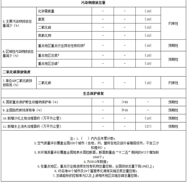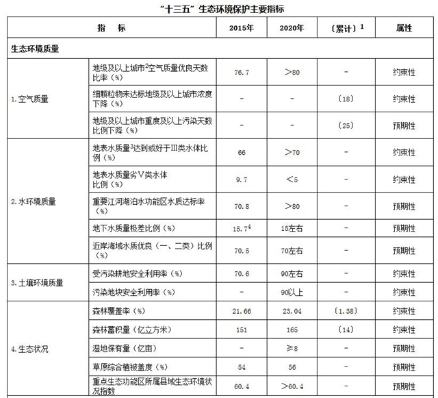附件:“十三五”生態(tài)環(huán)境保護主要指標(biāo)