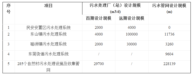 污水處理廠(站)及管網(wǎng)等設(shè)計規(guī)模一覽表