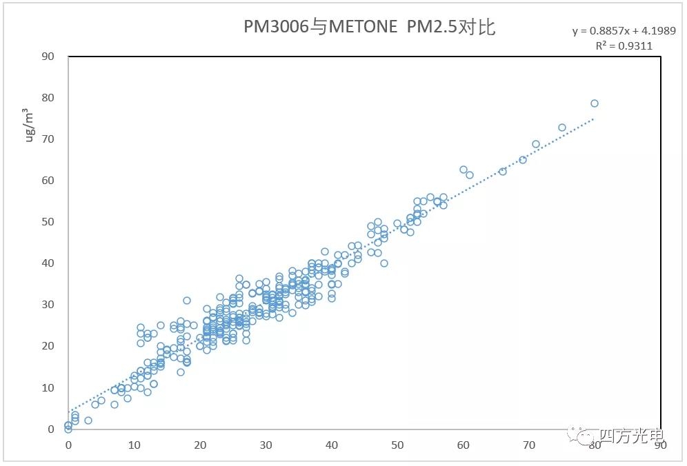 我國(guó)室外揚(yáng)塵網(wǎng)格化監(jiān)測(cè)經(jīng)歷了早期的β射線吸收法,到采用民用凈化器大量應(yīng)用的激光粉塵傳感器的過程。在使用過程中發(fā)現(xiàn),民用的激光粉塵傳感器不僅不能滿足-30——70℃室外環(huán)境溫度的全天候使用要求,同時(shí)還必須面對(duì)監(jiān)測(cè)場(chǎng)所,特別是建設(shè)工地經(jīng)常噴灑降霾的水霧影響,或者下雨潮濕的氣候環(huán)境等。這種環(huán)境下,水霧經(jīng)常被判斷為嚴(yán)重霧霾造成爆表。同時(shí)網(wǎng)格化室外粉塵監(jiān)控希望得到局部的可以與國(guó)家大氣環(huán)境監(jiān)測(cè)網(wǎng)數(shù)據(jù)具備的PM2.5/PM10/TSP的多項(xiàng)參數(shù)對(duì)比, 民用激光傳感器由于激光功率小,采樣流量小, PM10分辨率很低,無(wú)法提供準(zhǔn)確的PM10, 通常采用根據(jù)PM2.5的數(shù)字進(jìn)行比例計(jì)算,造成PM10監(jiān)測(cè)數(shù)據(jù)失真。四方光電研制的PM3003X、 PM3006激光揚(yáng)塵傳感器通過采用寬溫型大功率線型激光光源、API粉塵自動(dòng)識(shí)別技術(shù)、先進(jìn)的流道設(shè)計(jì)實(shí)現(xiàn)抗污染、大流量車規(guī)級(jí)采樣機(jī)構(gòu)、高濕度環(huán)境的水霧去除裝置等,低成本地實(shí)現(xiàn)了對(duì)室外揚(yáng)塵粉塵與β射線吸收法達(dá)到0.9相關(guān)系數(shù)的高精度測(cè)量。