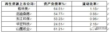 圖表:2017年再生資源上市公司償債能力分析