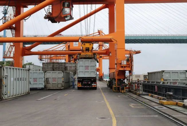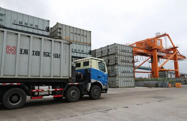 在上海城投環(huán)境集團(tuán)徐浦基地,一排排白色的集裝箱層層堆疊,形成一道獨(dú)特的“垃圾箱墻”。這些集裝箱專箱專用、分類運(yùn)輸,每個(gè)可容納12噸左右的生活垃圾。每天有約3000噸至3500噸的生活垃圾,經(jīng)過黃浦江、大治河被轉(zhuǎn)運(yùn)到末端的老港基地處理。
