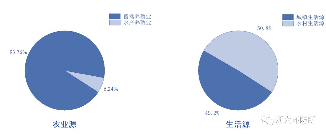 圖3 第二次全國(guó)污染源普查中農(nóng)業(yè)源和生活源