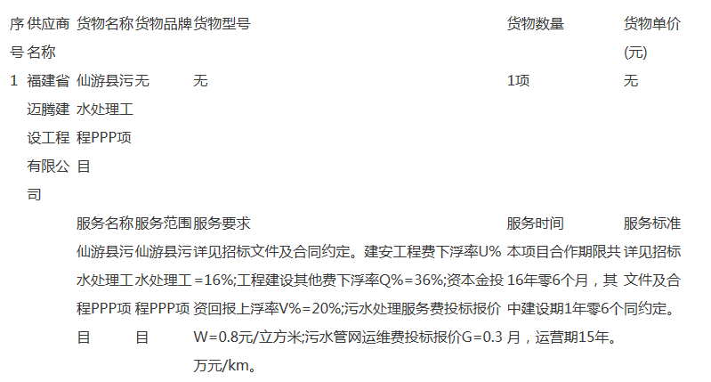 仙游縣污水處理工程PPP項(xiàng)目預(yù)中標(biāo)結(jié)果公告