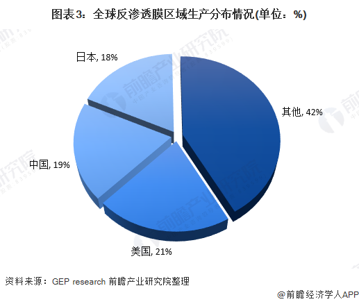 目前,美國(guó)、中國(guó)和日本和是反滲透膜最重要的生產(chǎn)國(guó)家,3個(gè)國(guó)家的總產(chǎn)量占全球總產(chǎn)量的比重接近60%。其中,美國(guó)、中國(guó)和日本位居前三位,占比分別為21%、19%和18%。