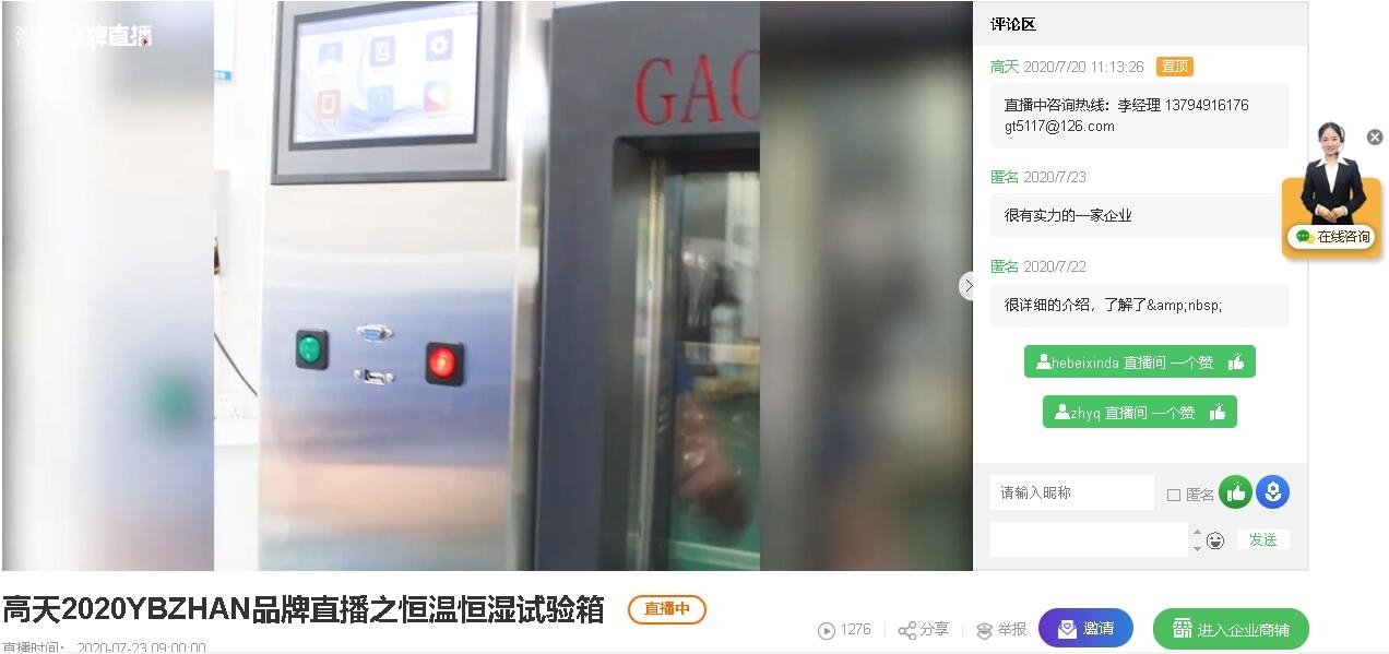 高天(←點(diǎn)擊進(jìn)入)直播間為大家?guī)?lái)了公司主營(yíng)產(chǎn)品恒溫恒濕試驗(yàn)箱和冷熱沖擊試驗(yàn)箱的介紹。