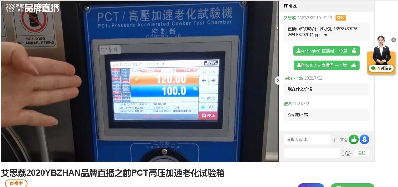 今天廣東艾思荔(←點(diǎn)擊進(jìn)入)直播間為大家?guī)?lái)了公司主打產(chǎn)品恒溫恒濕試驗(yàn)箱、前PCT高壓加速老化試驗(yàn)箱的介紹。