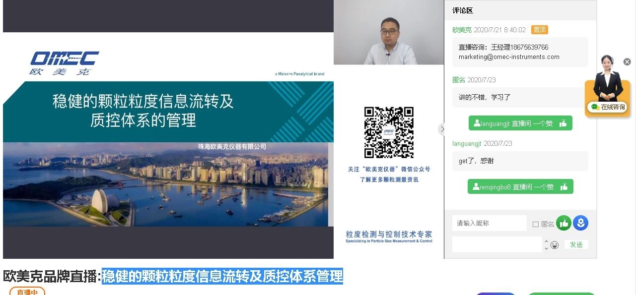 珠海歐美克(←點(diǎn)擊進(jìn)入)直播間為大家?guī)?lái)了穩(wěn)健的顆粒粒度信息流轉(zhuǎn)及質(zhì)控體系管理課程講解。