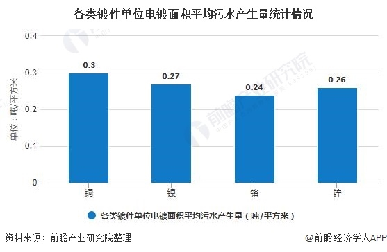 在污水排放方面,電鍍企業(yè)排出的污水不是含單一污染物的污水,而是綜合污水。據有關實驗數據顯示,電鍍工業(yè)中,1平方米的鍍銅件會產生0.3噸達標含銅廢水,1平方米的鍍鎳件會產生0.27噸達標含鎳廢水,1平方米鍍鉻件會產生0.24噸達標含鉻廢水,1平方米的鍍鋅件會產生0.26噸達標含鋅廢水。
