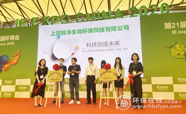 圖為環(huán)博會(huì)新品首發(fā)大會(huì)上,上海創(chuàng)凈生物揭牌儀式