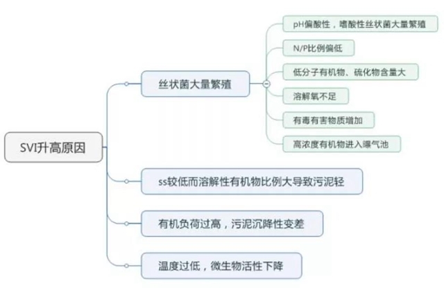 SVI值與污泥負荷有關(guān),污泥負荷過高或過低,活性污泥的代謝性能都會變差,SVI值也會變很高,存在出現(xiàn)污泥膨脹的可能。