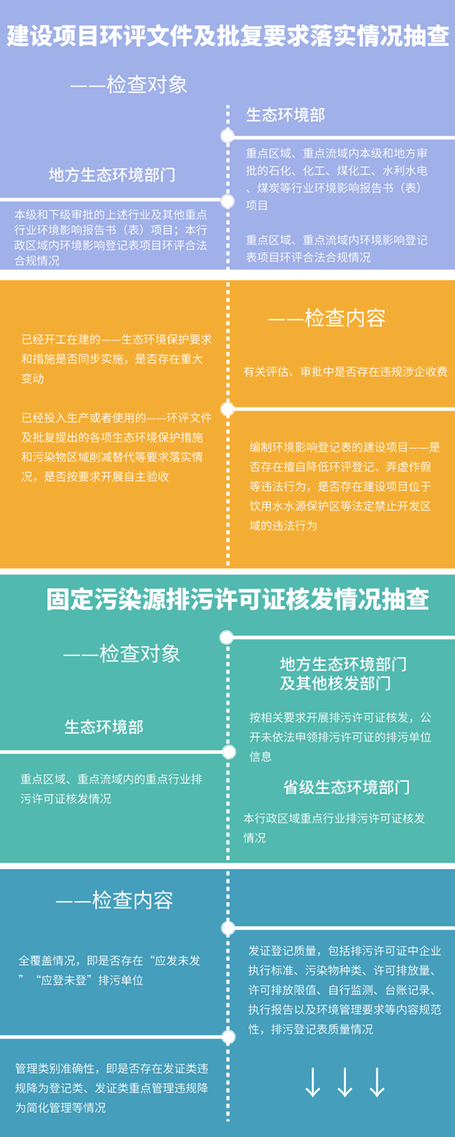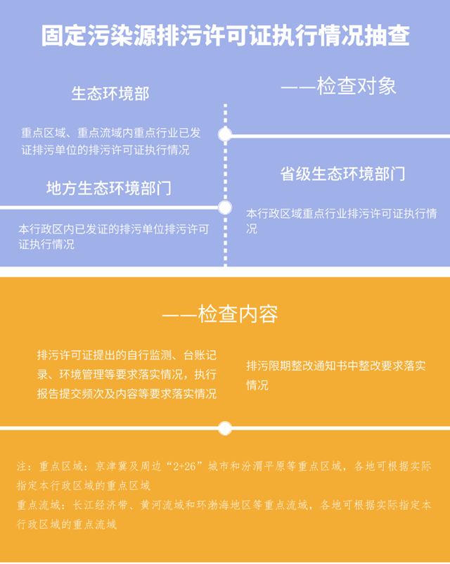 其中建設(shè)項目環(huán)評文件及批復(fù)要求落實情況抽查和固定污染源排污許可證執(zhí)行情況抽查都提到了,納入“雙隨機(jī)、一公開”日常執(zhí)法監(jiān)管。