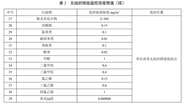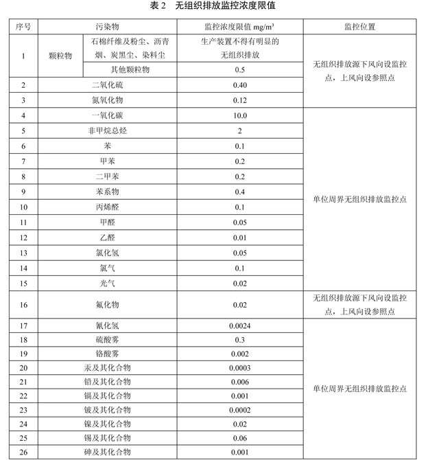 4.1.2 固定污染源無組織排放監(jiān)控濃度限值執(zhí)行表2的規(guī)定。新建污染源自本標(biāo)準(zhǔn)實(shí)施之日起執(zhí)行,現(xiàn)有污染源自2022年7月1日起執(zhí)行。
