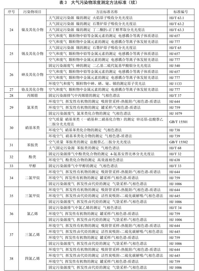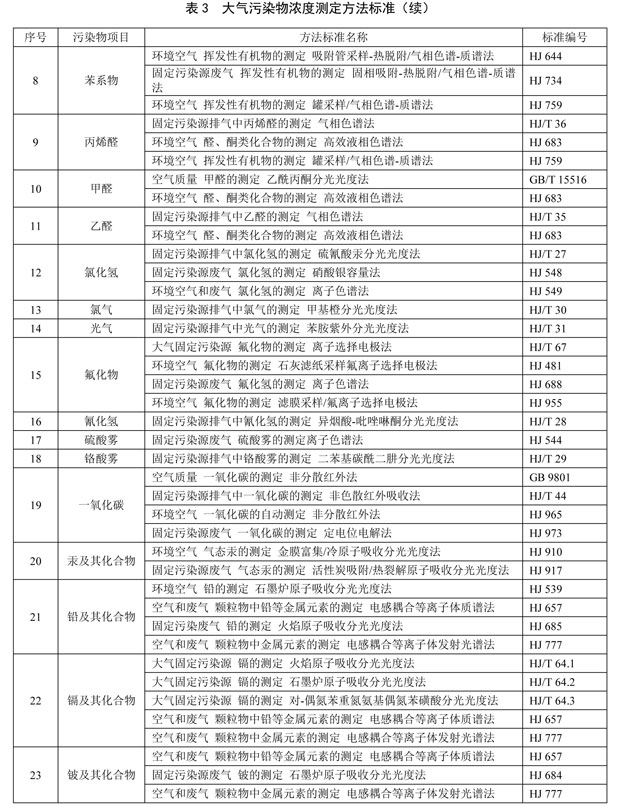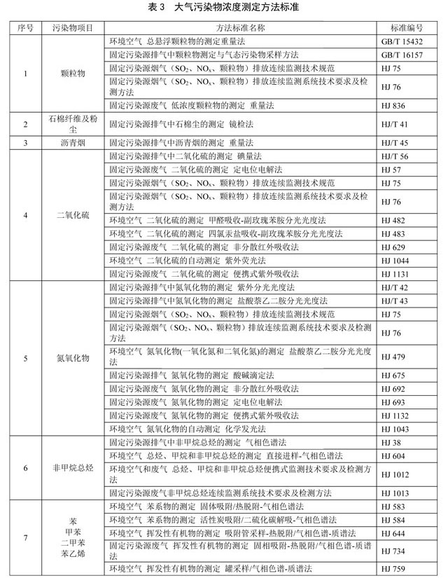 5.6 對(duì)大氣污染物排放濃度的測(cè)定采用表3所列的方法標(biāo)準(zhǔn)。本標(biāo)準(zhǔn)發(fā)布實(shí)施后,有新發(fā)布的國家環(huán)境監(jiān)測(cè)分析方法標(biāo)準(zhǔn),其方法適用范圍相同的,也適用于本標(biāo)準(zhǔn)對(duì)應(yīng)污染物的測(cè)定。