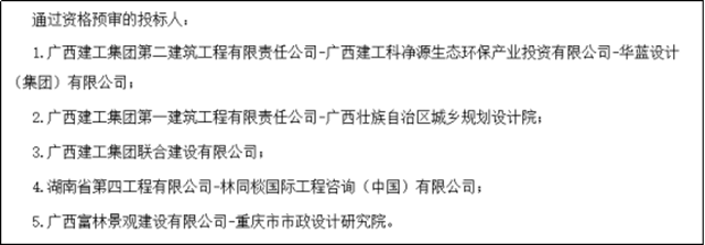 采用建設(shè)-運營-移交(BOT)的方式實施,合作期限20年,含建設(shè)1年。通過資格預(yù)審的企業(yè)如下: