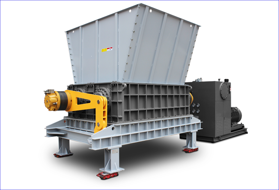與上述雙軸破碎機(jī)不同的是,MSB-HS系列大功率破碎機(jī)作為液壓驅(qū)動(dòng)的低速大扭矩雙軸剪切設(shè)備,動(dòng)刀高密度排布,主軸配合定刀系統(tǒng)可進(jìn)行雙向剪切,大幅提升剪切效率和刀具利用率。在硬件配置方面,大功率破碎機(jī)輔以先進(jìn)的密封系統(tǒng)防止物料從箱體漏出,保證軸承使用壽命。箱體模塊化設(shè)計(jì),配備獨(dú)立側(cè)板及軸承座,方便維護(hù)。也正基于此,大功率破碎機(jī)還可將危廢物品一次剪切至較小尺寸,適合后續(xù)處理。