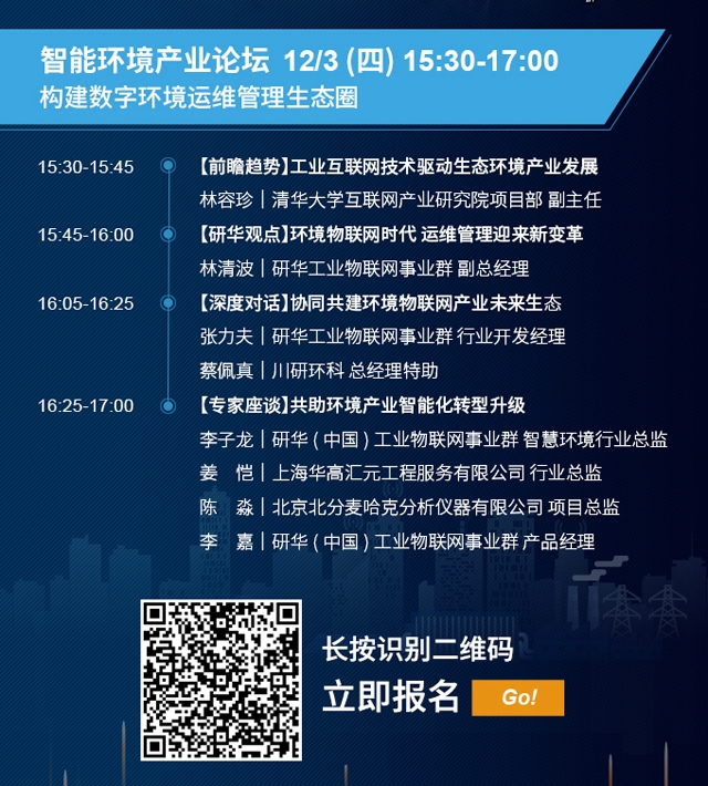 具體聊什么?在12月3日15:30—17:00時召開的智慧環(huán)境產(chǎn)業(yè)論壇(←點擊進入報名詳情頁)上,8位業(yè)界專家及企業(yè)代表將用翔實的數(shù)據(jù)和生動案例,從4大熱點話題解析“構(gòu)建 數(shù)字環(huán)境運維管理生態(tài)圈”。而在每個議題的專家報告中都緊緊圍繞著技術(shù)創(chuàng)新以及推動產(chǎn)業(yè)升級,提前劇透一下: