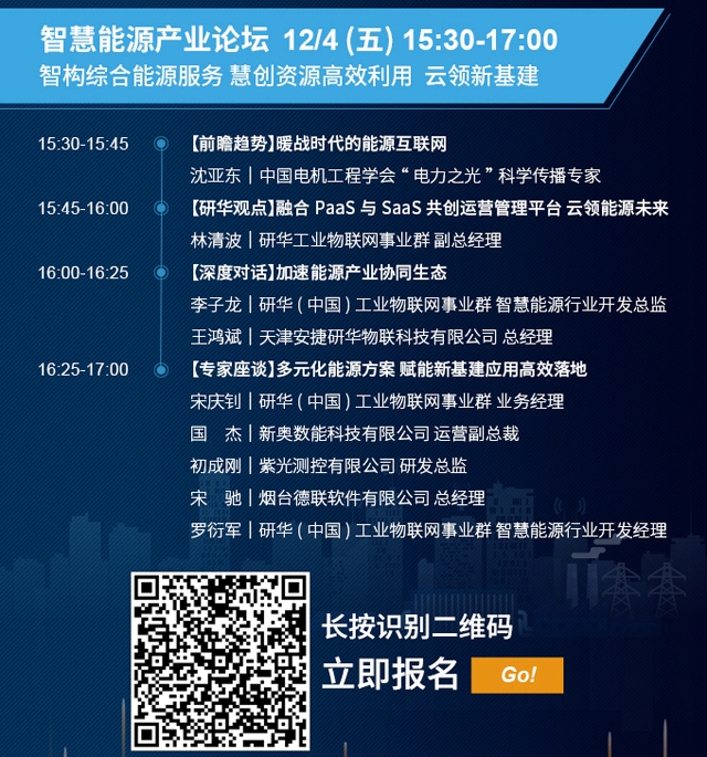 而在12月4日15:30—17:00時召開的智慧能源產(chǎn)業(yè)論壇(←點擊進入報名詳情頁)上,同樣是精彩紛呈:聚焦“智構(gòu)綜合能源服務(wù)、慧創(chuàng)資源高效利用、云領(lǐng)新基建”議題,首先是中國電機工程學會“電力之光”科學傳播專家沈亞東將帶來《【前瞻趨勢】暖戰(zhàn)時代的能源互聯(lián)網(wǎng)》;研華工業(yè)物聯(lián)網(wǎng)事業(yè)群副總經(jīng)理林清波將分享《融合PaaS與SaaS共創(chuàng)運營管理平臺 云領(lǐng)能源未來》主題演講;緊接著,研華(中國)工業(yè)物聯(lián)網(wǎng)事業(yè)群智慧能源行業(yè)開發(fā)總監(jiān)李子龍、天津安捷研華物聯(lián)科技有限公司總經(jīng)理王鴻斌將就《加速能源產(chǎn)業(yè)協(xié)同生態(tài)》進行分享。