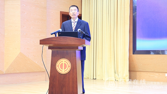 圖為浙江省科學(xué)技術(shù)協(xié)會學(xué)會部副部長胡國軍致辭