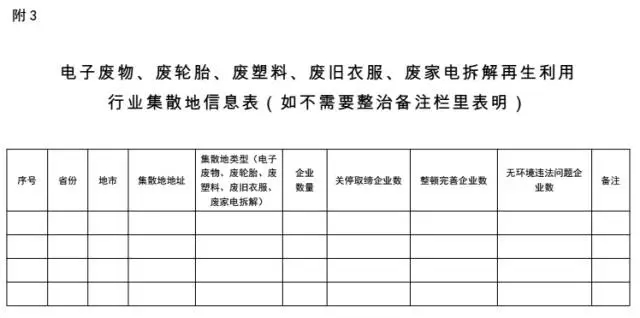 各省(區(qū)、市)按照清理整頓實(shí)施方案,先期開展本行政區(qū)域內(nèi)專項(xiàng)清理整頓摸排工作,并于2017年9月30日前將本省(區(qū)、市)再生利用企業(yè)信息表(集散地外)和集散地信息表(見附2、3)分別報(bào)送環(huán)境保護(hù)部、發(fā)展改革委、工業(yè)和信息化部、公安部、商務(wù)部和工商總局。