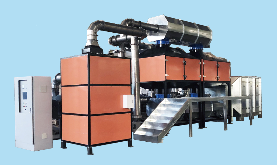 該VOCs治理設(shè)備采用積木和拼裝式結(jié)構(gòu),積木式結(jié)構(gòu)有利于不同型號(hào)產(chǎn)品的配件通用,實(shí)施標(biāo)準(zhǔn)化流水作業(yè)生產(chǎn);拼裝式結(jié)構(gòu)方便運(yùn)輸和現(xiàn)場(chǎng)安裝及方便設(shè)備遷移易址。該VOCs治理設(shè)備主要包括粗中精三道干式過(guò)濾裝置、抽屜式活性炭VOC吸附床、自動(dòng)防火系統(tǒng)(液氮與水噴淋消防系統(tǒng))、自動(dòng)防爆系統(tǒng)(自動(dòng)泄壓系統(tǒng))、電磁控制管道閘閥、工業(yè)級(jí)通風(fēng)管道、催化燃燒脫附主機(jī)、維修維護(hù)平臺(tái)、PLC自動(dòng)控制系統(tǒng)與在線技術(shù)支持系統(tǒng)等,集標(biāo)準(zhǔn)化、智能化、安全化于一體,優(yōu)勢(shì)顯著。