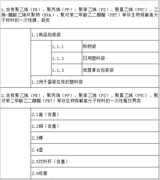 2、《海南省禁止生產(chǎn)銷售使用一次性 不可降解塑料制品名錄(第一批)》