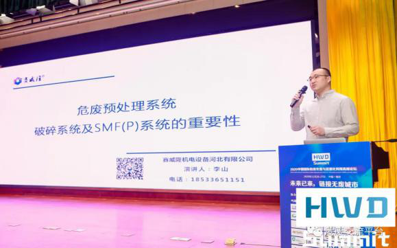 其次是賽威隆機(jī)電設(shè)備河北有限公司銷售經(jīng)理李山。以“危廢預(yù)處理系統(tǒng)破碎系統(tǒng)及SMF(P)的重要性”為主題進(jìn)行了分享。