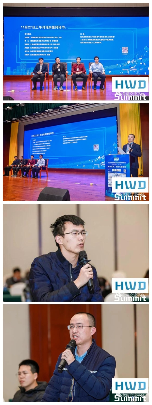 小組討論&提問環(huán)節(jié)由許曉芳博士、楊順生教授、高級工程師劉科先生、易有元總經(jīng)理以及馮大正經(jīng)理主持,主題為“市場下行 危廢企業(yè)如何破局逆勢生長”,現(xiàn)場討論氛圍熱烈,各位參會嘉賓積極提問討論。