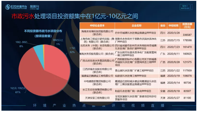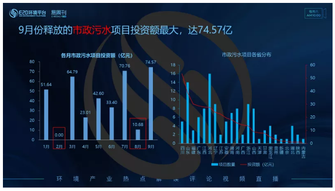 市政污水類項目:9月投資額釋放最大,達74.57億