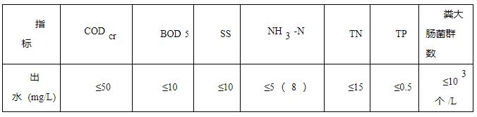 設(shè)計進水水質(zhì)及出水水質(zhì)指標(biāo):