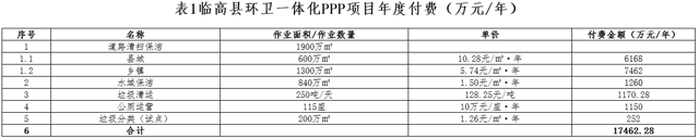 (1)縣城清掃保潔分項(xiàng)單價(jià)為10.28元/㎡·年;