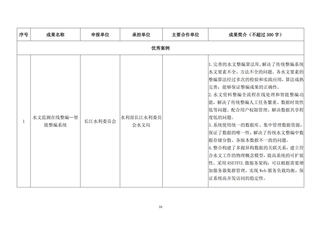 為及時總結(jié)先行先試經(jīng)驗,提煉形成可復(fù)制可推廣成果,加快推進智慧水利,根據(jù)《水利部關(guān)于開展智慧水利先行先試工作的通知》(水信息〔2020〕46號)要求,水利部網(wǎng)信辦近期組織完成智慧水利先行先試中期檢查評估工作,同步開展了智慧水利先行先試成果申報與評選。11家先行先試單位積極響應(yīng),共申報先行先試成果49項,經(jīng)技術(shù)指導(dǎo)人初評、征求業(yè)務(wù)司局業(yè)務(wù)指導(dǎo)人意見、責任專家審核、集中評審?fù)镀钡拳h(huán)節(jié),并經(jīng)部長專題辦公會審議,形成智慧水利先行先試成果目錄(2020年度)(共10項最佳實踐和8項優(yōu)秀案例,排名不分先后)。現(xiàn)將成果目錄及相關(guān)信息予以公示,如有異議,請在公示期內(nèi)以實名書面形式反饋我辦。