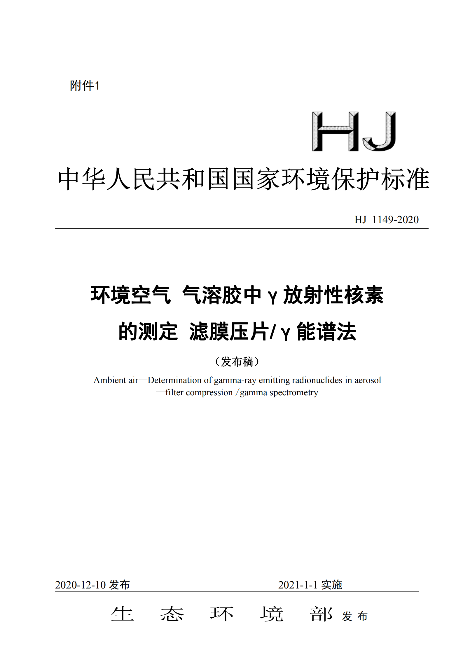 為貫徹《中華人民共和國環(huán)境保護(hù)法》和《中華人民共和國放射性污染防治法》,保護(hù)生態(tài)環(huán)境, 保障人體健康,規(guī)范環(huán)境空氣氣溶膠中γ放射性核素的測定方法,制定本標(biāo)準(zhǔn)。