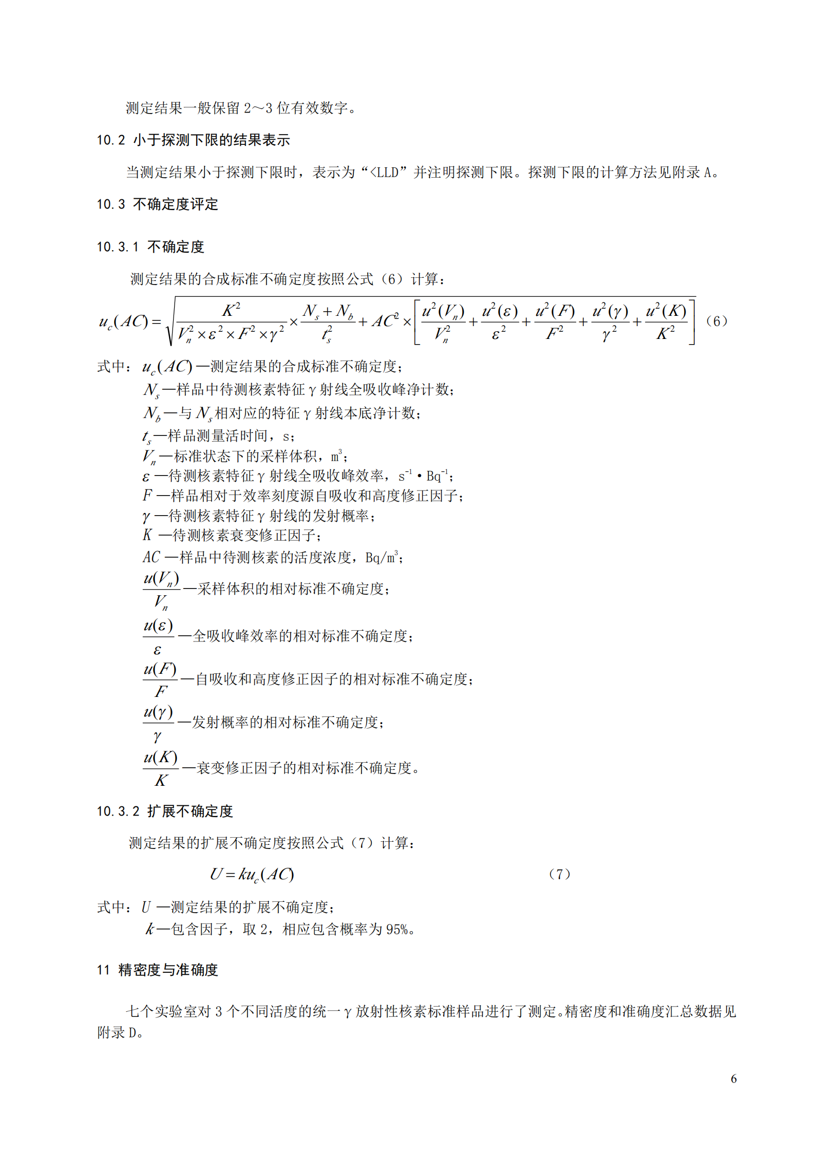 當(dāng)采樣體積為 10000 m 3(標(biāo)準(zhǔn)狀態(tài)),測量時(shí)間為 24 小時(shí)時(shí),本標(biāo)準(zhǔn)測定的各γ放射性核素探測 下限為 5μBq/m 3~100μBq/m 3,探測下限見附錄 A。