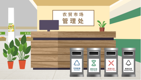 農(nóng)貿(mào)市場因為批量銷售果蔬,產(chǎn)生的廚余垃圾和其他垃圾數(shù)量較大,因此農(nóng)貿(mào)市場指引里標注,可分段、分樓層設置廚余垃圾、其他垃圾收集容器,設置數(shù)量根據(jù)市場實際情況決定。指引中還特別強調(diào)包裝用的繩子、塑料袋等要投入其他垃圾收集容器,不得與廚余垃圾混投。