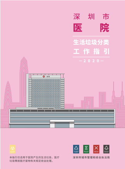 醫(yī)院指引在封面放置了醫(yī)療廢棄標志,著重提示本指引僅適用于醫(yī)院產(chǎn)生的生活垃圾,醫(yī)療垃圾需按醫(yī)療廢物有關規(guī)定收運處理。