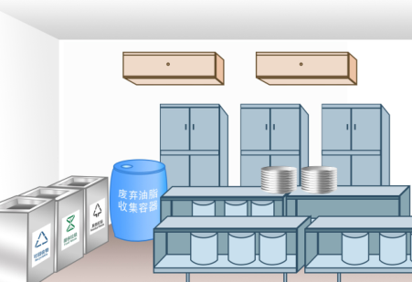 餐飲場所要提倡光盤行動,用餐區(qū)應張貼設置相關宣傳海報;同時后廚區(qū)要設置油脂隔油池及收集容器,廢棄油脂不得倒入下水道,相應的垃圾分類暫存點也應配備廢棄油脂收集容器。