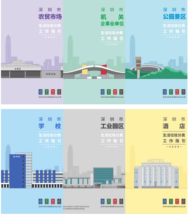 為指導生活垃圾分類投放與收集設施設置,推動構(gòu)建科學合理、簡便易行的分類投放體系,深圳市城市管理和綜合執(zhí)法局組織編制了學校、工業(yè)園、酒店、農(nóng)貿(mào)市場、機關事業(yè)單位、公園景區(qū)、醫(yī)院、餐飲場所、城中村、住宅區(qū)、商務寫字樓、大型商超12 類場所的生活垃圾分類投放工作指引。
