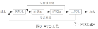 1980年,Rabinowitz和Marais對Bardenpho工藝的研究中,選擇3階段的Bardenpho工藝,即所謂的傳統(tǒng)A2/O工藝(見圖6)。至此最為常用的脫氮除磷工藝正式登場(距今已經(jīng)整整40年,目前還在大量使用)。