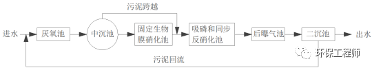 其實該工藝還有一定的缺陷,比如:①厭氧池中無法完全吸附有機(jī)物,導(dǎo)致固定膜反應(yīng)器進(jìn)水中攜帶有BOD,一方面抑制硝化反應(yīng),另一方面造成有機(jī)物的浪費(fèi)和能耗的增高;②在進(jìn)水氨氮偏高時,缺氧池中反硝化除磷菌不能徹底的去除硝氮,導(dǎo)致出水TN的升高。