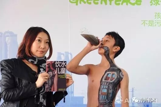 在上海第二屆廣告人藝術(shù)展上,由全球環(huán)保公益組織“綠色和平”等創(chuàng)意展示的行為藝術(shù)--“飲水兒童”讓現(xiàn)場(chǎng)觀眾頗具視覺的震撼,藝術(shù)家通過在模特兒童身上創(chuàng)意畫出宛如人體內(nèi)臟的一個(gè)“水污染處理器”圖案,以此警示,污染飲用水對(duì)人類所造成的無法彌補(bǔ)的傷害,引發(fā)社會(huì)對(duì)水污染問題的關(guān)注和重視。