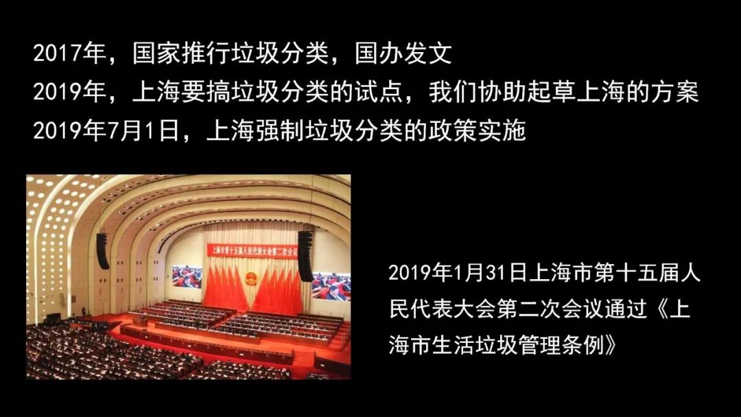 2016年12月21日,總書記親自主持召開中央財經(jīng)領(lǐng)導(dǎo)小組會,他把垃圾分類和房價、和社保作為關(guān)系到民生的六大問題來提出;2017年國辦就發(fā)文;上海在2019年的7月1日,就根據(jù)立法先行的原則進(jìn)行強制的垃圾分類。