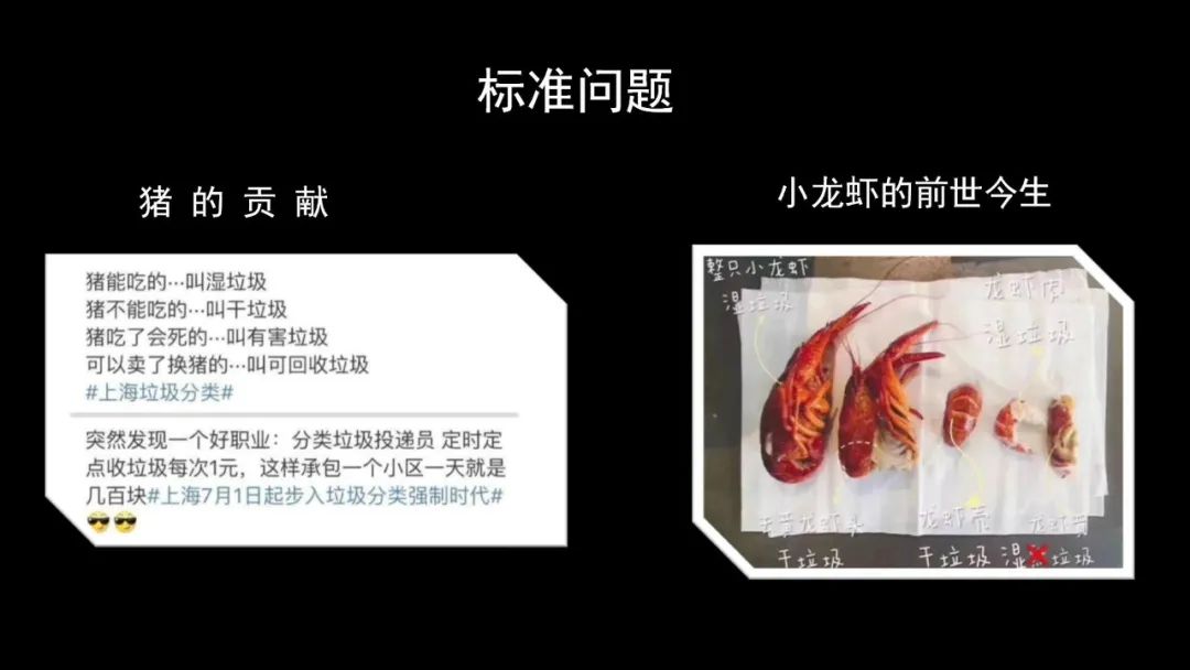 “豬能吃的叫濕垃圾,豬不能吃的叫干垃圾,豬吃了會死的叫有害垃圾,賣了能買豬肉吃的叫做可回收垃圾”,很形象吧,這是標(biāo)準(zhǔn)的問題;