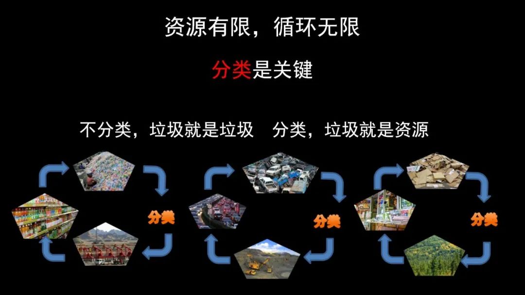 所以我們說要挖掘城市礦產(chǎn),分類是關(guān)鍵!不分類,垃圾就是垃圾;分了類,垃圾就變成資源。所以大家經(jīng)常有一句話叫做:垃圾是放錯地方的資源。