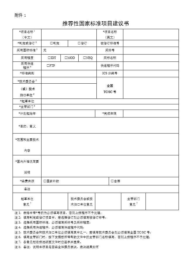 a. 《推薦性國家標(biāo)準(zhǔn)項目建議書》(一式三份,原件簽字、蓋單位公章,附電子版),見附件1。
