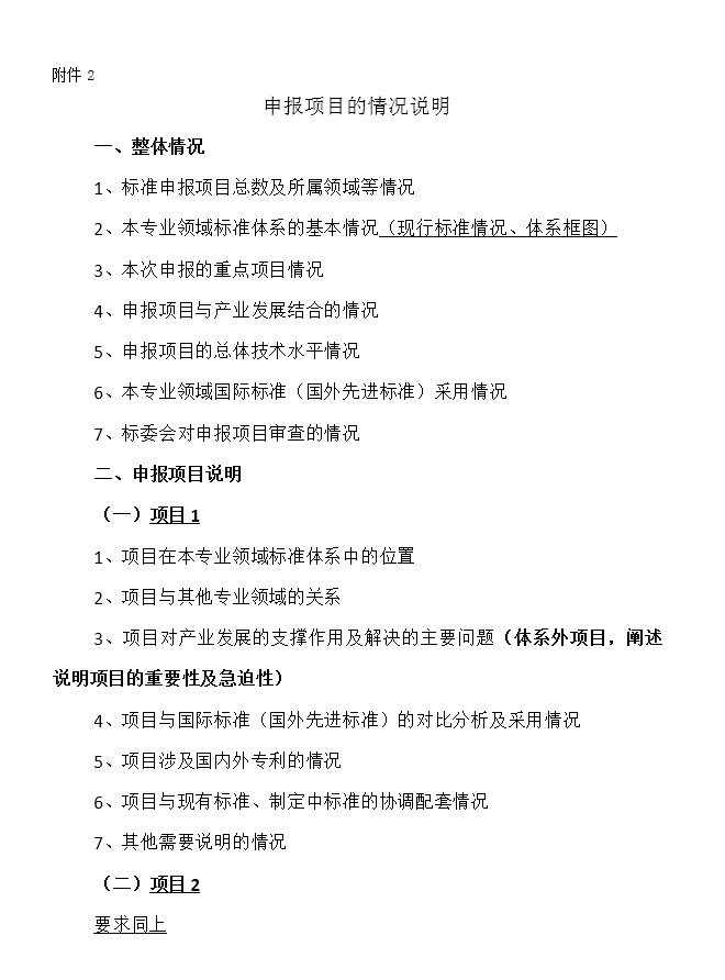 a.申報項目的總體情況說明(一式兩份,附電子版),具體要求見附件2。