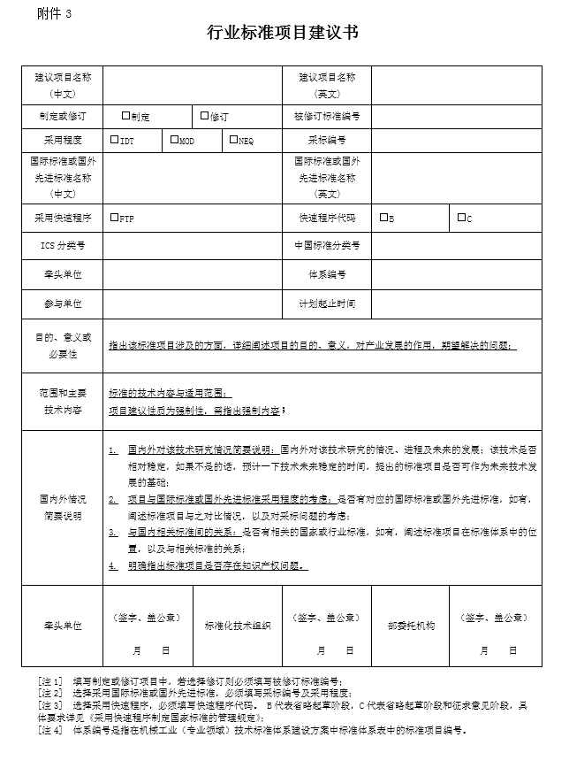 b.《行業(yè)標(biāo)準(zhǔn)項目建議書》(一式三份,原件簽字、蓋單位公章,附電子版),見附件3