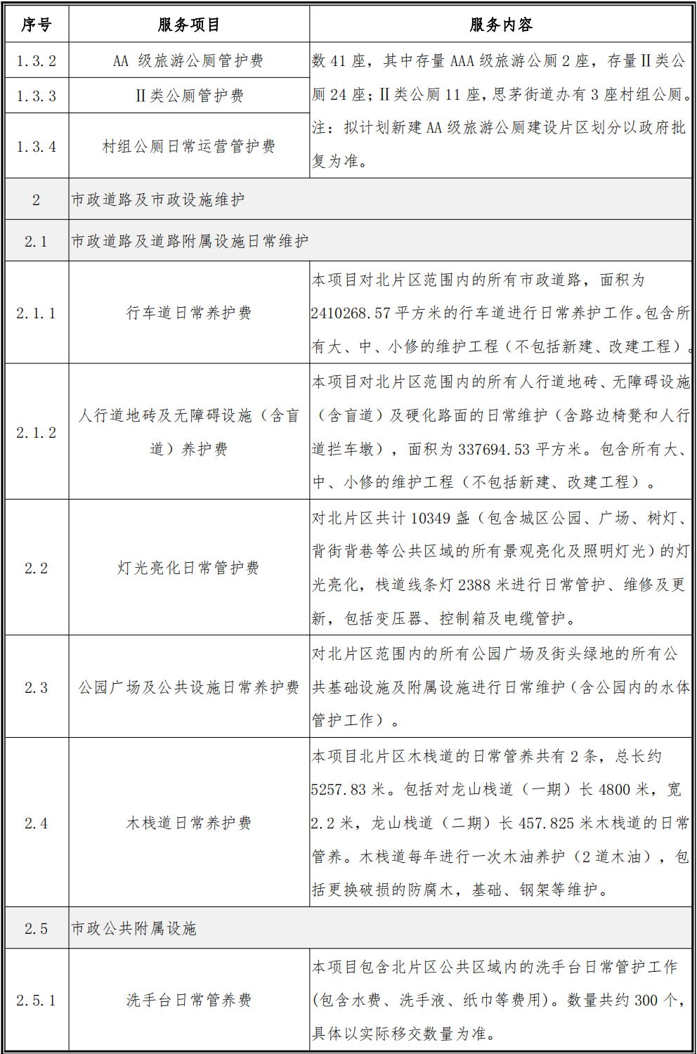 本項(xiàng)目服務(wù)內(nèi)容包括環(huán)境衛(wèi)生清掃保潔、道路及市政設(shè)施日常管護(hù)、園林綠化日常管養(yǎng)及河道保潔等。